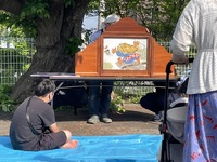 泥付きの玉ねぎに真っ赤なトマト、買ったトマトは持って帰るのが待ちきれなくてその場で全部食べてしまいました。また今回初の大型紙芝居もやりました。