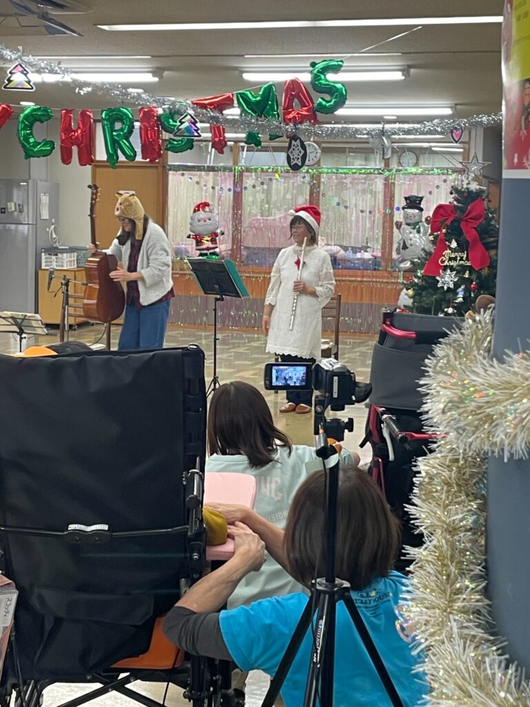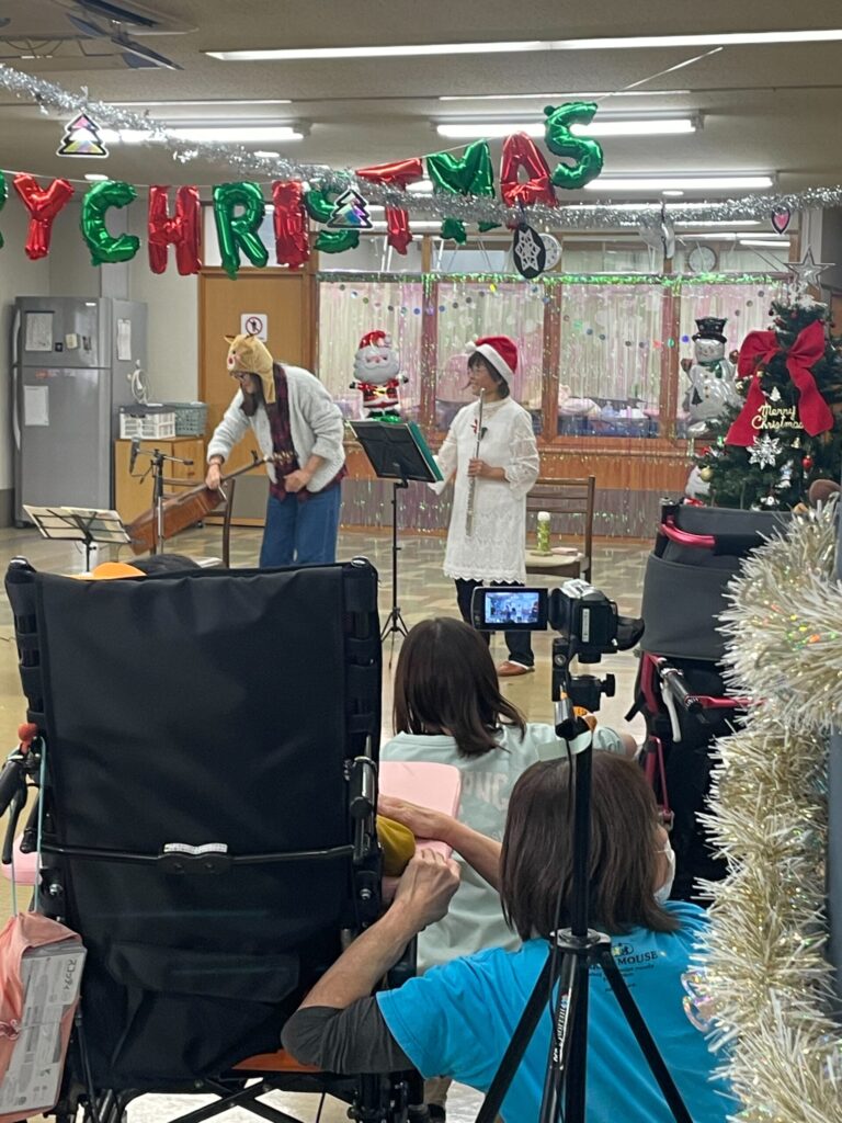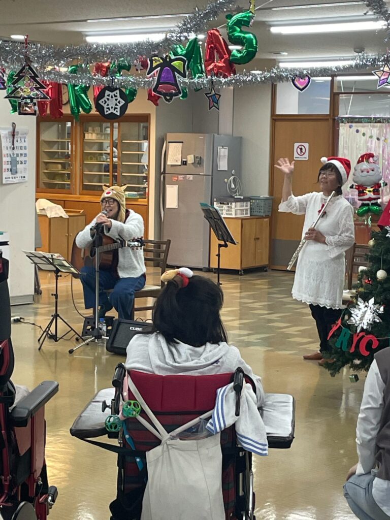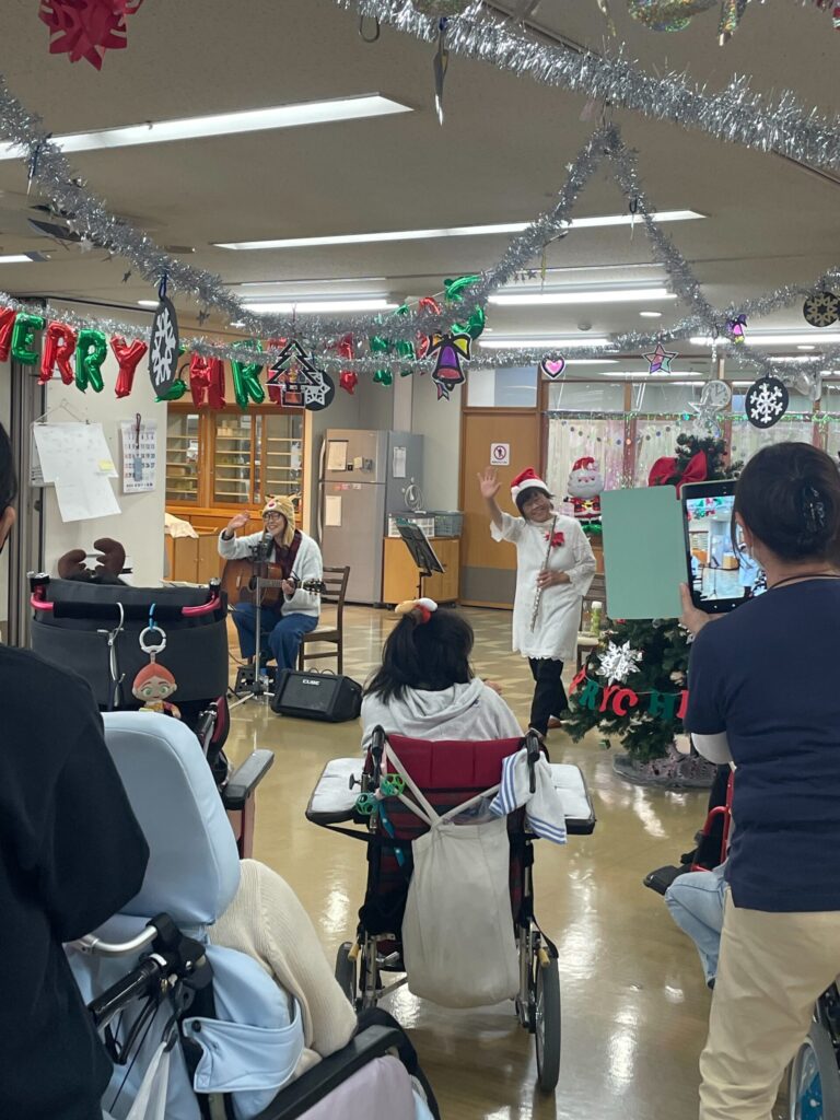 歌あり、楽器演奏あり、サンタさんからのプレゼントあり。利用者さんもご家族の方も大いに楽しんでいただけたようです。