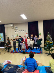 歌あり、楽器演奏あり、サンタさんからのプレゼントあり。利用者さんもご家族の方も大いに楽しんでいただけたようです。